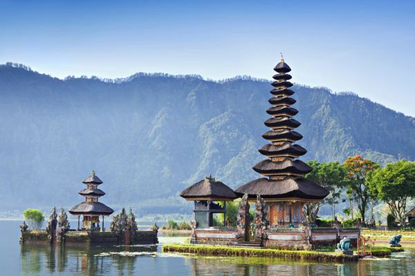 Ulun Danu Beratan Temple Bali is a Hindu Temple uniquely set on the lake surrounded by beautiful view of Beratan lake and green hills.