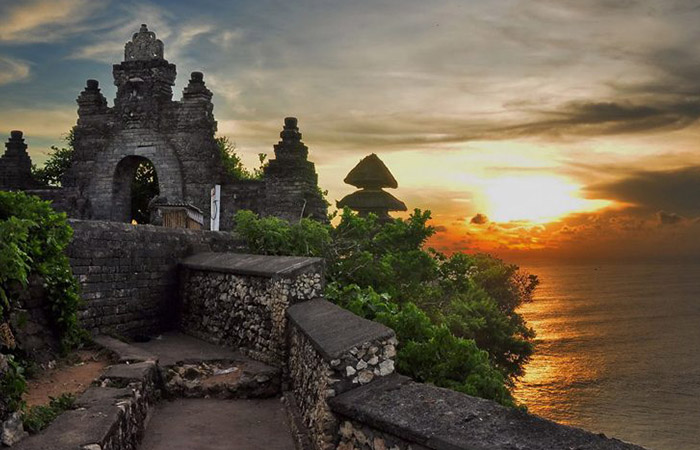 Uluwatu Temple is one of the six key temples believed to be Bali’s spiritual pillars, is renowned for its magnificent location, perched on top of a steep cliff approximately 70 meters above sea level.